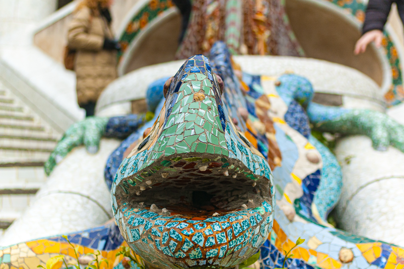 "El Drac" (Il Drago), una famosa fontana ornamentale situata all'ingresso del Park Güell